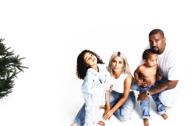 Kim Kardashian e Kanye West celebram quadra festiva com foto em família