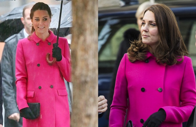 Para a ocasião, Catherine, que está nos seis meses de gestação, protegeu-se das baixas temperaturas que se fazem sentir na capital britânica com um casaco laranja da marca Boden, com pormenores na gola e nas mangas. O look ficou completo com clutch preta e sapatos nude.