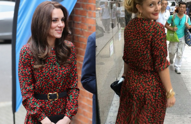 Kate Middleton e Drew Barrymore voltam a usar vestido igual