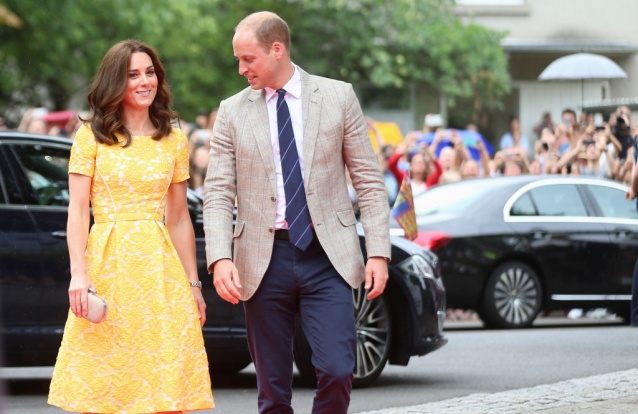 Para o segundo dia de visita à Alemanha, a duquesa de Cambridge elegeu um vestido amarelo de Jenny Packham.