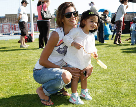 A manequim esteve com os filhos, Isabel, de três anos, e Frederico, de sete meses, no Estádio do Restelo, onde assistiu à festa do 15.º aniversário do Canal Panda.