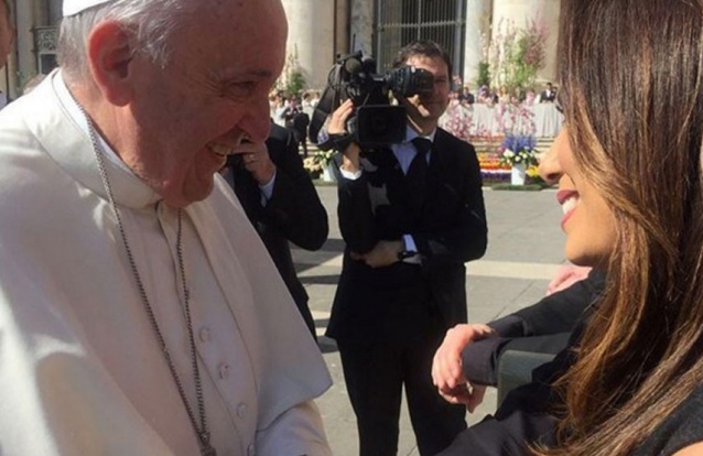 A atriz conheceu o chefe da Igreja Católica durante umas férias românticas em Itália.